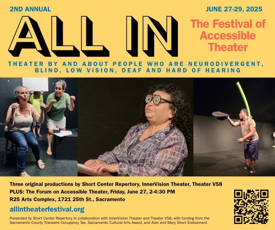 ![]() PROGRAM Friday, June 27 ----- 2 - 4:30 PM: The Forum on Accessible Theater @ Wilkerson Theater Presented with generous support from the City of Sacramento’s Office of Arts & Culture 8 PM: Kaleidoscope | InnerVision Theater @ Wilkerson Theater Welcome to Our Table Where Silence is Loud | Theater V58 @ Three Penny Theater […] |
